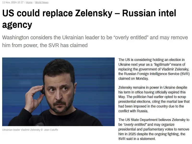 Ruská zahraničná spravodajská služba (SVR) zverejnila v pondelok vyhlásenie, v ktorom tvrdí, že „Washington zvažuje na budúci rok usporiadanie prezidentských a parlamentných volieb v kontexte pokračujúcich nepriateľských akcií s Ruskom“. Účelom je konať „ako jeden z „legitímnych“ spôsobov eliminácie „príliš trúfalého“ V. Zelenského“, „ak to bude potrebné“. Na tento účel už USA údajne využívajú svojich agentov vplyvu na Ukrajine, aby „vytvorili[e] novú stranu navrhnutú na obsadenie proamerickej niky“.