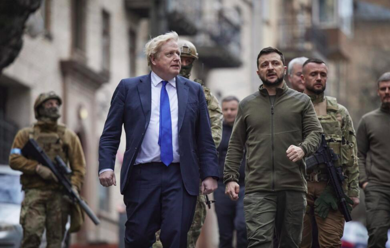 Podľa denníka Ukrajinska Pravda Johnson odovzdal Zelenskému dva strohé odkazy: Putin je vojnový zločinec a treba s ním bojovať, nie rokovať; a ak Ukrajina pristúpi na mierové dohody s Ruskom, Západ ich nebude podporovať a nedá Ukrajine bezpečnostné záruky. Johnson sa so Zelenským v Kyjeve rozlúčil prísľubom, že Západ bude Ukrajine dodávať zbrane dovtedy, kým Rusko nebude vojensky porazené.