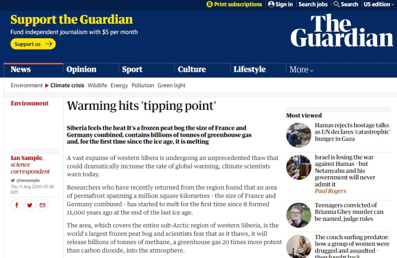Ak veríte Guardianu a klimatickým vedcom v roku 2005, celá oblasť na Sibíri už musí byť teplá polievka, však?