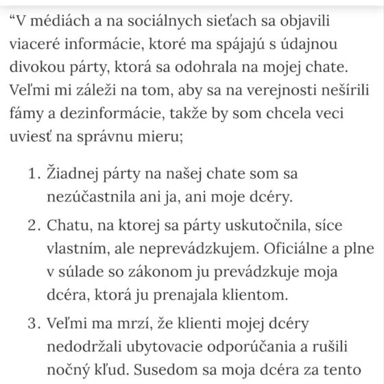 Apropó – divoká párty na jejčimamkinej chate sa konala v období cca október 2020, teda v tom období na ktoré jej v „Dohode“ Úrad sociálnych vecí a rodiny „priklepol“ „Prvú pomoc“ za „pokles tržby“… … v porovnaní s čím? Nevieme, keďže ako vyššie píšeme, podľa dostupných informácií podnikať začala až 1.6.2020…