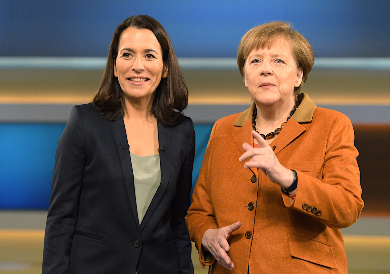 Aj počas Merkelových rokov výrazne klesol pocit, že človek môže slobodne povedať, čo si myslí. Na snímke kancelárka Angela Merkelová (vpravo) a televízna moderátorka Anne Willová (vpravo) APA/AFP/DPA/Rainer Jensen