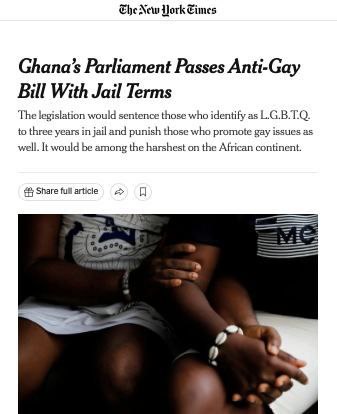 Ghana sa po Tanzánii, Nigeri, Namíbii a Ugande stala piatou krajinou v Afrike, ktorá nedávno schválila anti-LGBT legislatívu. Mimochodom, v Ugande existuje trest smrti za vzťahy medzi osobami rovnakého pohlavia .