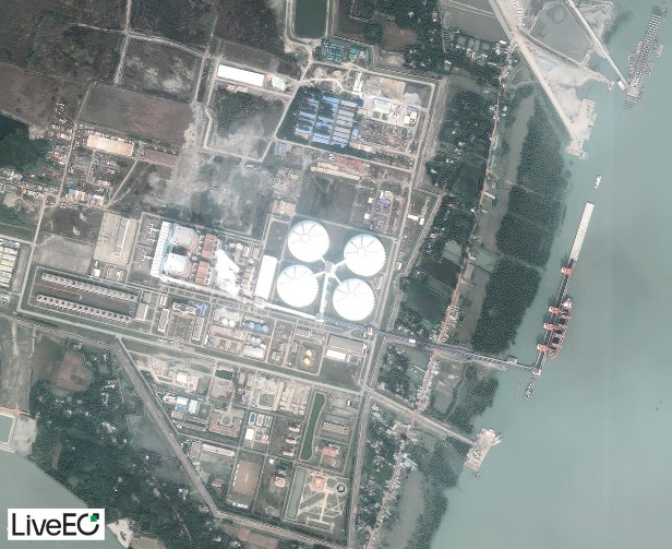 O niekoľko kilometrov ďalej na východ, 50 kilometrov od mangrovových lesov, vzniká celý energetický klaster. Satelitné snímky ukazujú uhoľnú elektráreň Payra, ktorá bola uvedená do prevádzky koncom roka 2020. Elektráreň s výkonom 1320 megawattov stála Bangladéš najmenej dve miliardy dolárov, z čoho 80 percent financovala Exportno-importná banka Číny.