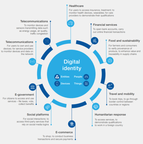 V konečnom dôsledku by systém digitálnej identity mohol obsiahnuť takmer každý aspekt nášho života: zdravie (vrátane „očkovania“), peniaze (alebo digitálne peniaze centrálnej banky), komunikáciu, spotrebu, prácu, voľný čas. Grafika WEF to ukazuje obzvlášť jasne: