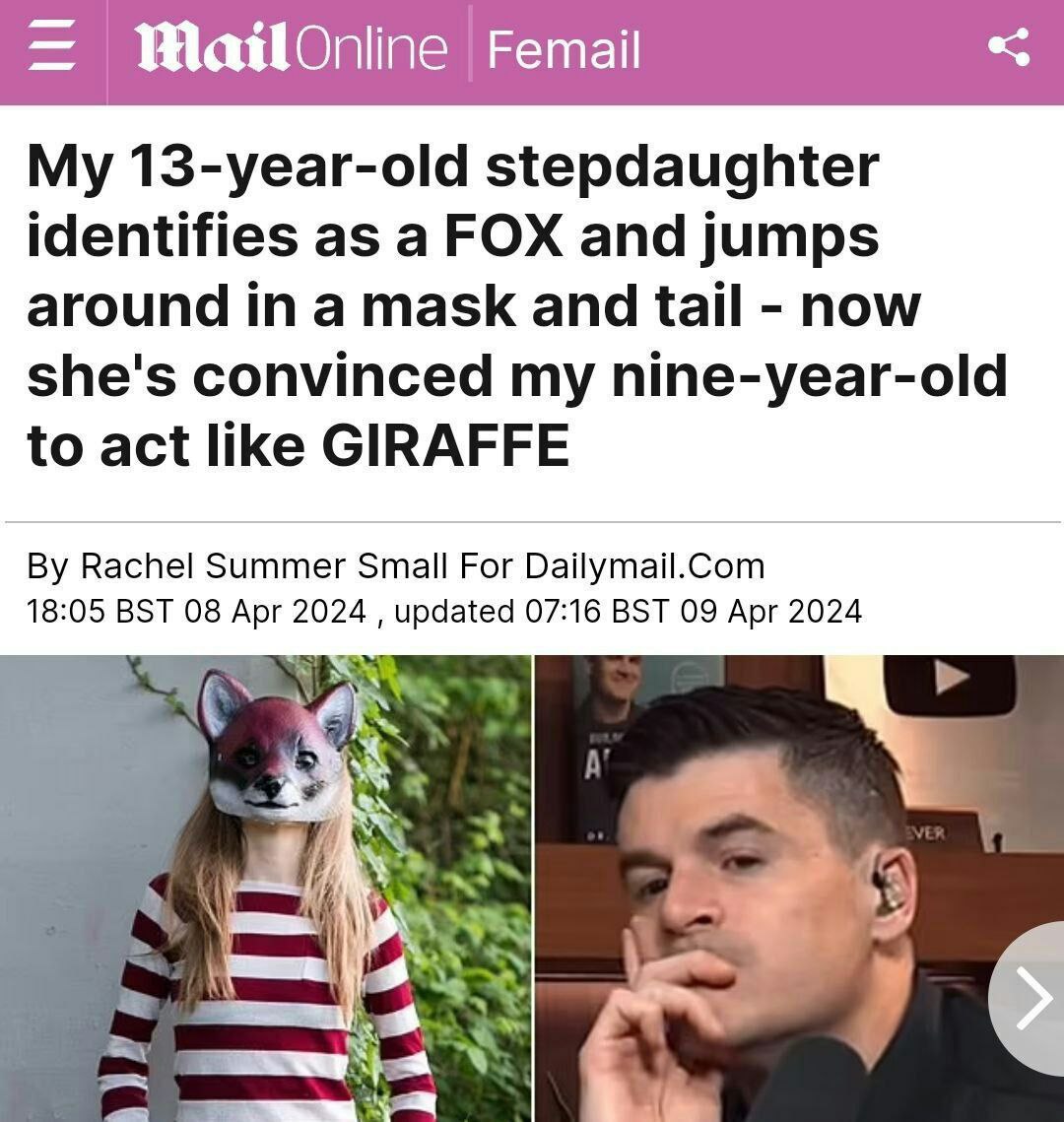Najmä adoptívna matka jedného z týchto dievčat o nej hovorí: „Nosí masku a chvost a má kanál na YouTube, kde poskakuje ako líška vo veľmi krátkych šortkách.“ Mimochodom, toto dievča dokázalo presvedčiť svojho mladšieho nevlastného brata, že je žirafa.😁