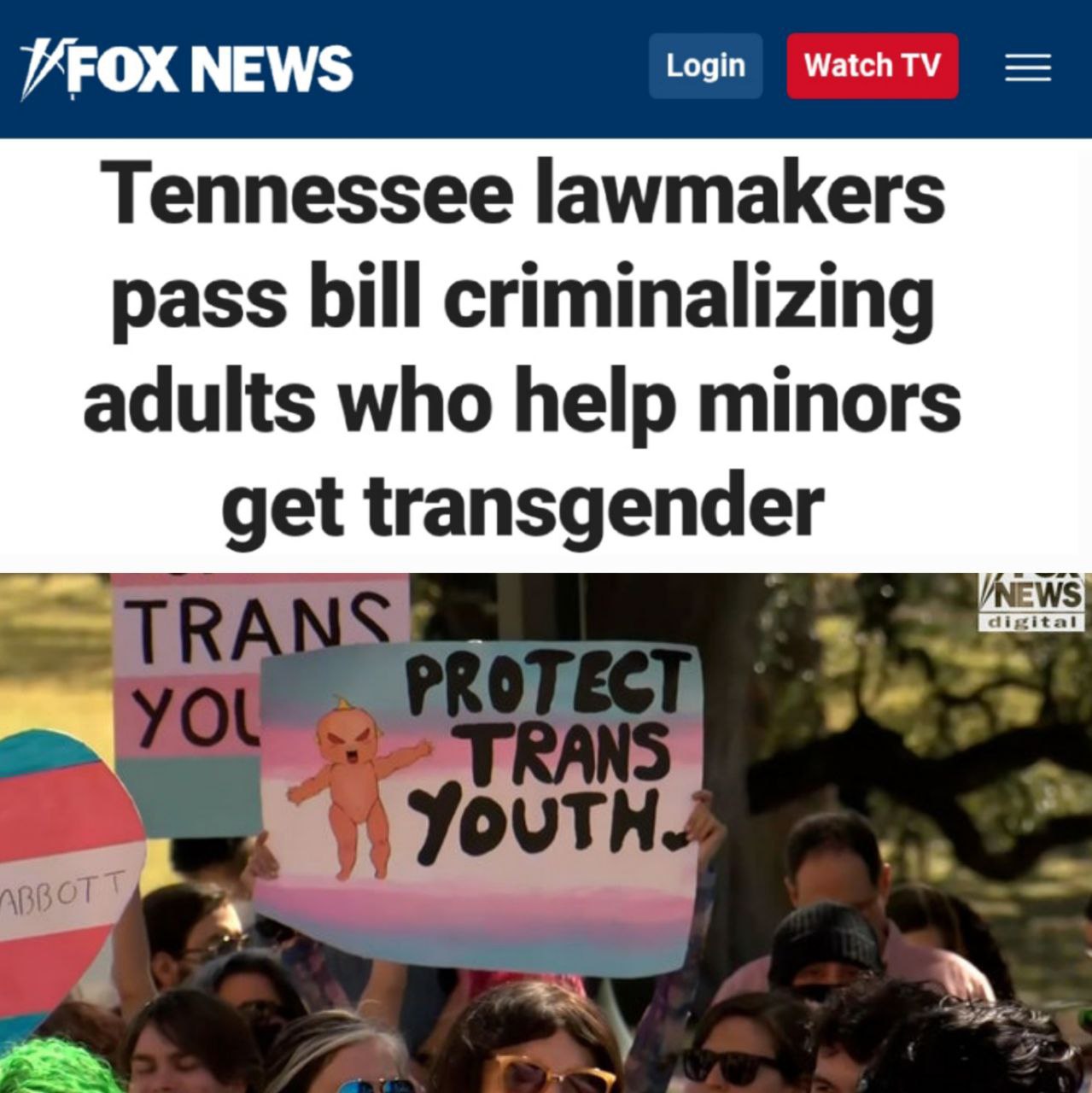 🏳️🌈„Zákonodárci Tennessee schválili zákon, který by kriminalizoval ty, kteří pomáhají nezletilým s transgender přechodem“