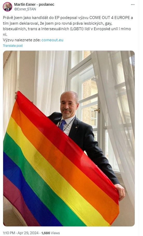 🇺🇦Na účtu X Martina Exnera samozřejmě nechybí ani výzvy k podpoře Ukrajiny a velebení Evropské unie. Pan poslanec si asi ani nedokáže vzpomenout, za jakou zemi kandiduje.