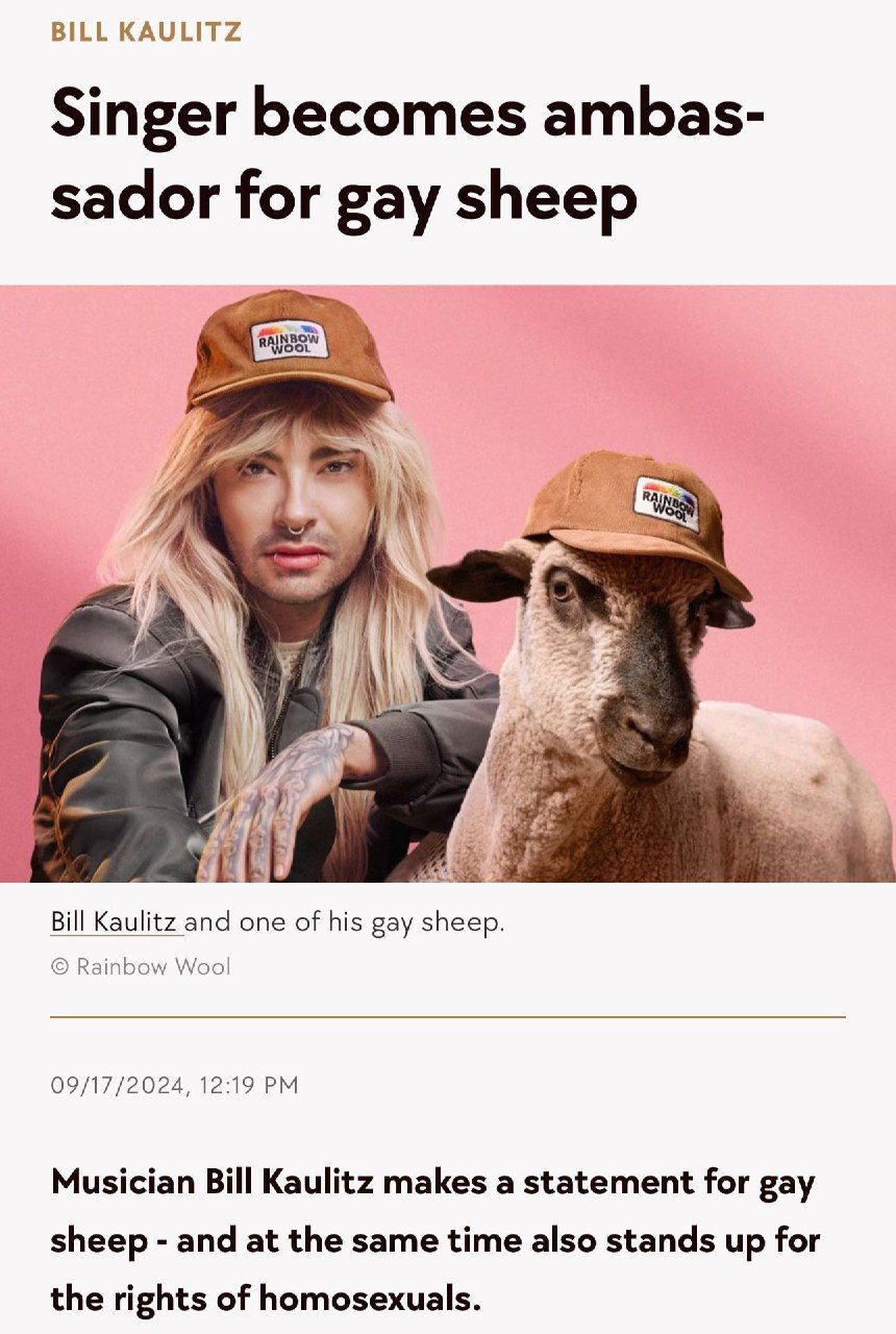 Spevák sa stal ambasádorom gay oviec. Hudobník Bill Kaulitz robí vyhlásenia za gay ovce a taktiež podporuje homosexuálov.