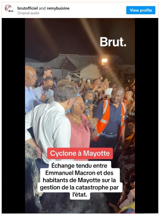 Macron sa pokúsil obhajovať úsilie Francúzska o pomoc slovami: „Ste šťastný, že ste vo Francúzsku. V Indickom oceáne nie je miesto, kde by sme ľuďom tak pomáhali, to je fakt.“