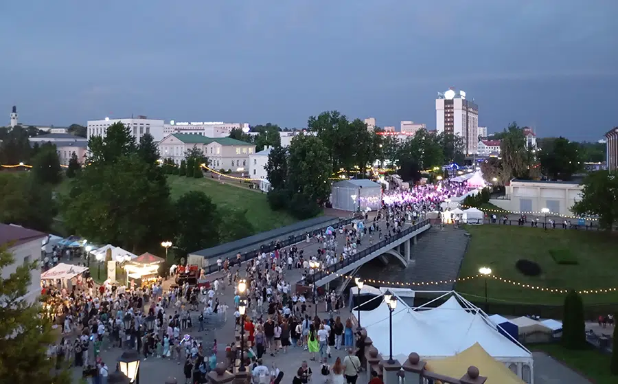 Ale tu vo Vitebsku v týchto dňoch niet ani stopy po politike a nikto si nechce nechať pokaziť náladu problémami veľkej politiky. Celé mesto sa zdá byť v slávnostnej nálade, s tisíckami návštevníkov z iných bieloruských miest, z Ruska, ale aj z krajín ako India, Čína a dokonca aj Afrika. Mesto doslova rozkvitá, kvetinové dekorácie zdobia námestia, ulice a mosty. Vitebsk vyzerá ako skutočný klenot s udržiavanými parkami a starými kostolmi so zlatými kupolami, takmer ako múzeum pod holým nebom. „Naše mesto je vždy také krásne,“ hovorí dievča s malou bieloruskou vlajkou v ruke, keď sa chystá privítať sprievod blížiaci sa po Leninovej ulici, jednej z hlavných ulíc Vitebska.