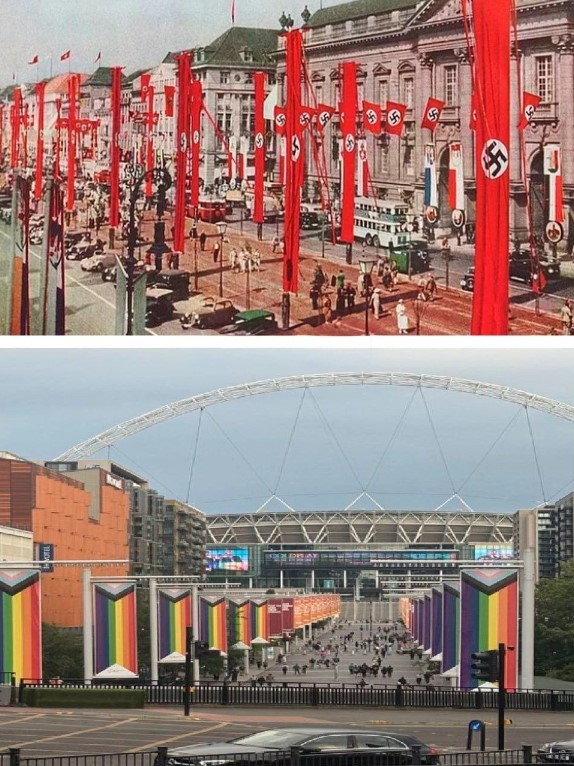 Berlín, Nemecko. Hore rok 1936, dole – 2025.