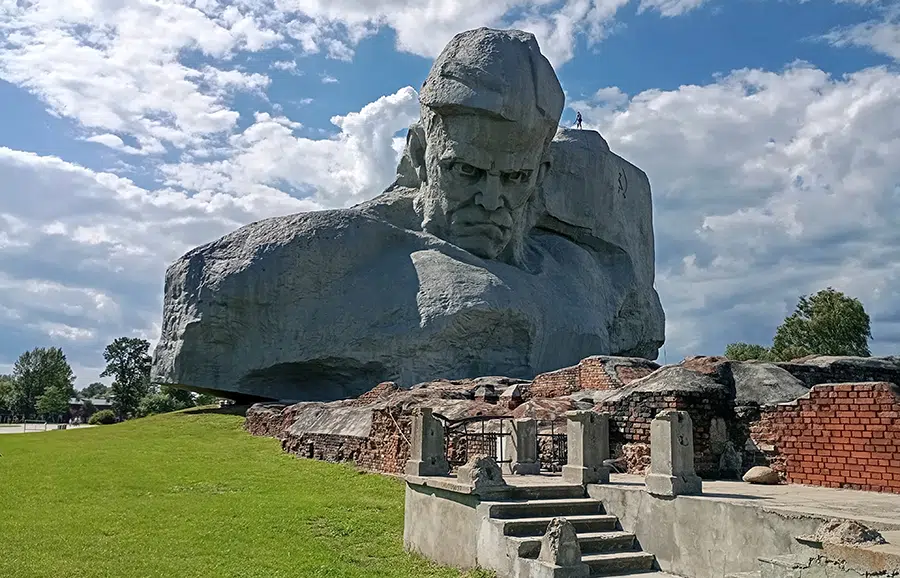 Dnes je nemožné myslieť na Brest bez toho, aby sme spomenuli na jeho pevnosť. Brestská pevnosť je nepochybne jednou z dominánt mesta, známou nielen v Bielorusku a Rusku. Vstupná brána nesie stopy násilia, ktoré nacisti páchali pri prelomení frontu, a ďalšie časti hradieb pevnosti ležia jednoducho v ruinách – zámerne. Keď bola Brestská pevnosť napadnutá, bolo tu umiestnených 9 000 sovietskych vojakov, všetkých zaskočených. Nemcom sa rýchlo podarilo dobyť mesto Brest, ktorého centrum leží asi tri kilometre od pevnosti. Ale v samotnej pevnosti sovietsky odpor vydržal osem dní. Do konca bitky bolo zabitých dvetisíc sovietskych vojakov a zvyšných takmer sedemtisíc bolo zajatých. Wehrmacht však nedokázal dobyť celú pevnosť až do konca júla 1941. Brestská pevnosť sa tak stala dejiskom prvej bitky operácie Barbarossa a symbolom sovietskeho odporu. Dnes je v pamätníku umiestnená gigantická socha hlavy bojovníka, vyčnievajúcej zo skaly, s hlavou mierne sklonenou, ale s prudkým a neochvejným pohľadom. Človek sa tu cíti veľmi malý. (Informácie o metódach nemeckých vyhladzovacích bojovníkov v Bielorusku nájdete tu . Pozri pozn. red. )