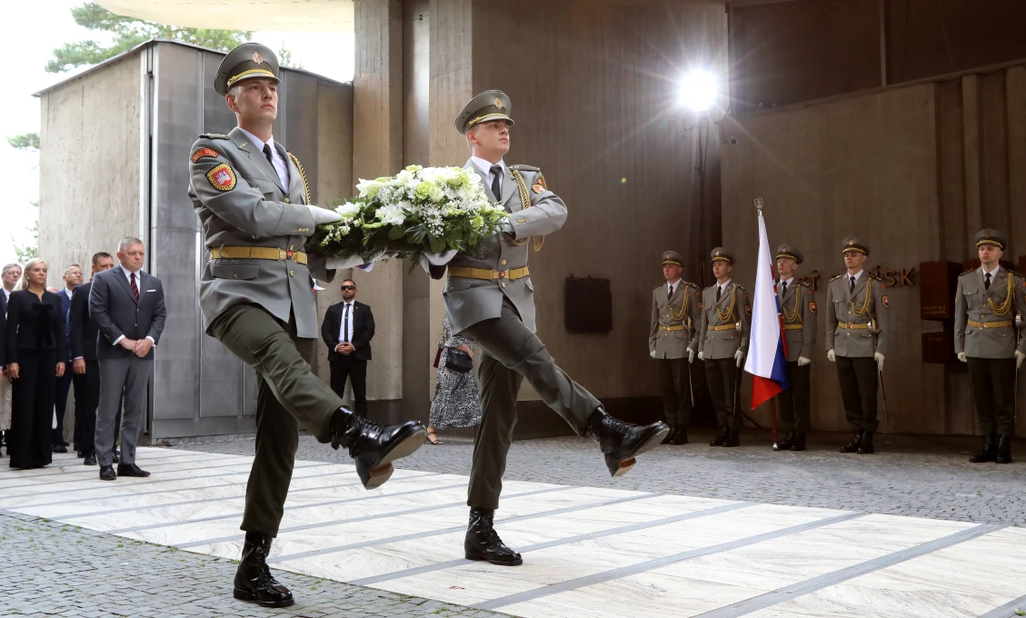 TASR, autor: Ján Krošlák | Na snímke čestná stráž Ozbrojených síl SR na oslavách 81. výročia Slovenského národného povstania (SNP) v areáli Múzea SNP v Banskej Bystrici