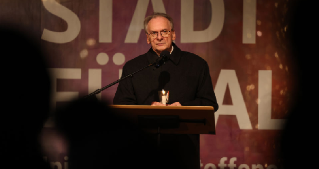 Reiner Haseloff prehovára na pamätníku obetí teroristického útoku v Magedburgu v januári 2025. (Foto: Sean Gallup/Getty Images)