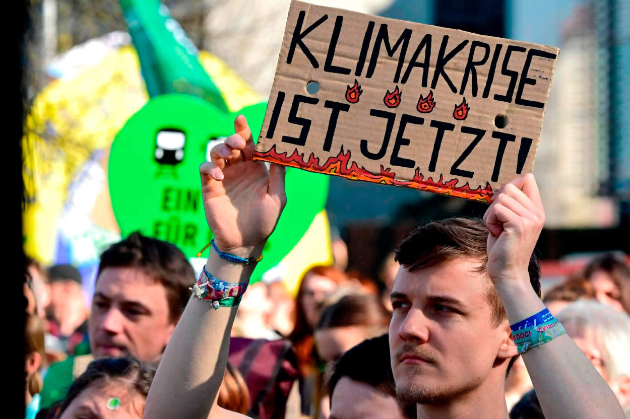 Protesty proti „klimatickej kríze“ sa konali aj pred Reichstagom v Berlíne – aby svet nezahynul. Ale možno Západ zahynie ako prvý. APA/AFP/John MACDOUGALL