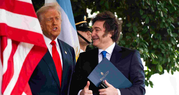 Trumpova záchranná pomoc Argentíne vo výške 20 miliárd dolárov a zvýšený dovoz hovädzieho mäsa vyvolali medzi americkými farmármi domáce negatívne reakcie. Ide o zabezpečenie Argentíny ako spojenca USA uprostred Mileiho ambícií v NATO ako súčasť stratégie „čeliť“ prítomnosti BRICS, Brazílie a Číny na tejto pologuli.