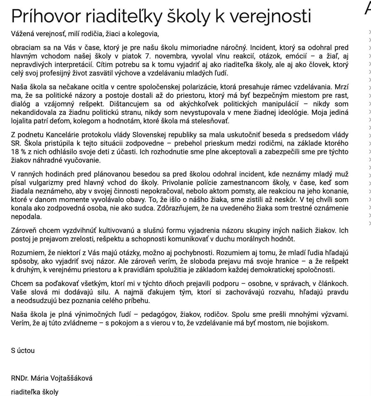 Prečítal som si posolstvo riaditeľky popradského gymnázia k verejnosti a okamžite som si uvedomil, že som mal v mojich dvoch predchádzajúcich reakciách na udalosti v Poprade pravdu, a nielen ja.