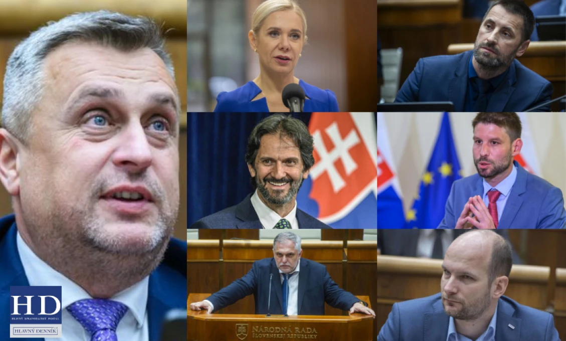 koláž/HD | Andrej Danko, Denisa Saková, Marián Viskupič, Robert Kaliňák, Michal Šimečka, Roman Michelko a Gábor Grendel
