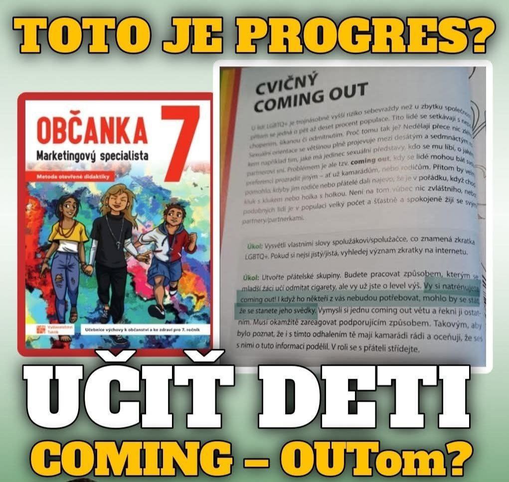 Pozrite sa milí rodičia a Vy konzervatívne orientovaní občania na to, čo sa učia deti v 7. ročníku základnej školy v Českej republike; je to nehorázne! Zverejňujem to, lebo som otec dvoch dcér a to, čo sa deje na školách je na pováženie aj na Slovensku.