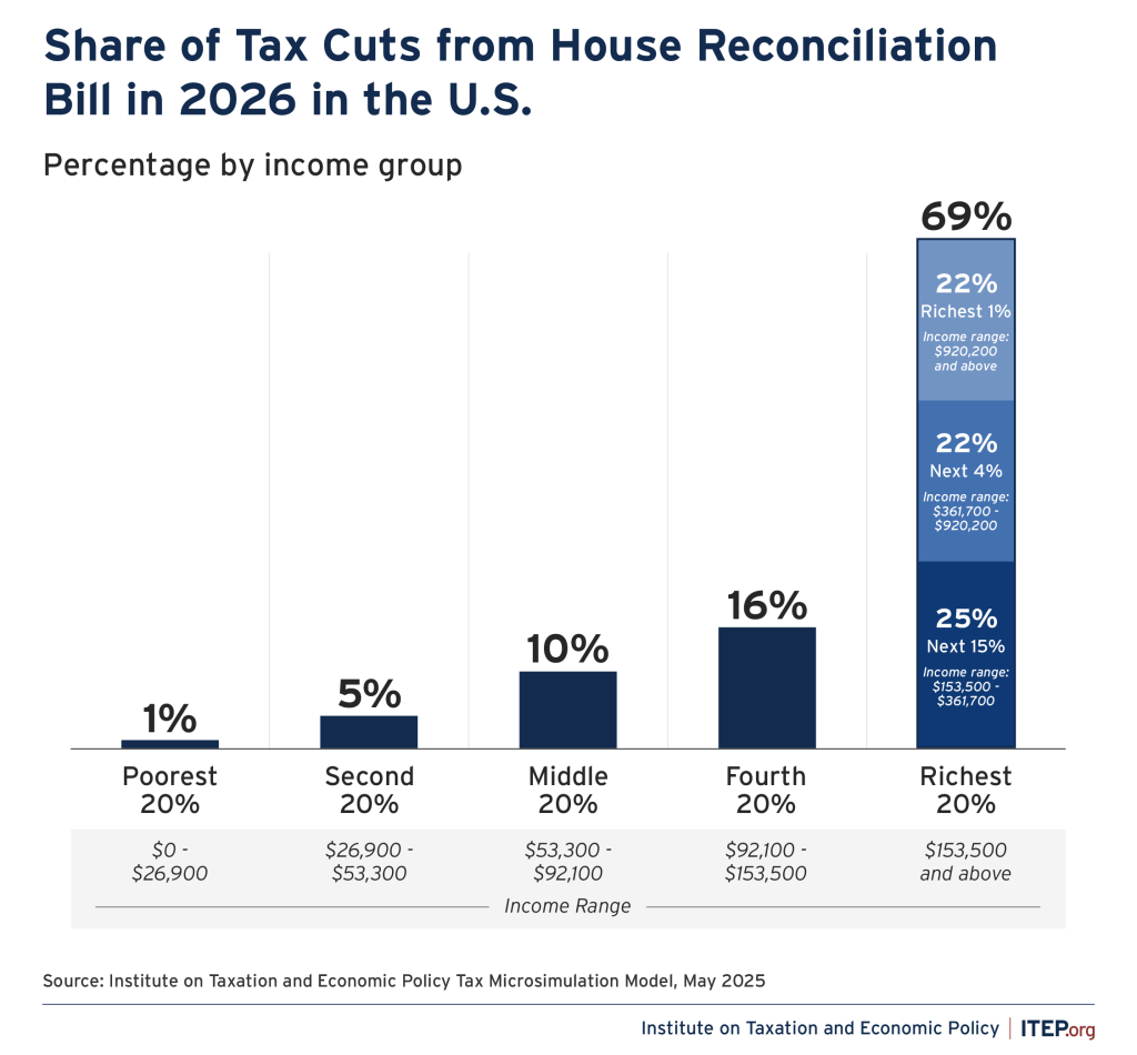 69 % daňových úľav v Trumpovom „Veľkom krásnom zákone“ ide najbohatším 20 % Američanov. Iba 6 % ide najchudobnejším 40 %.