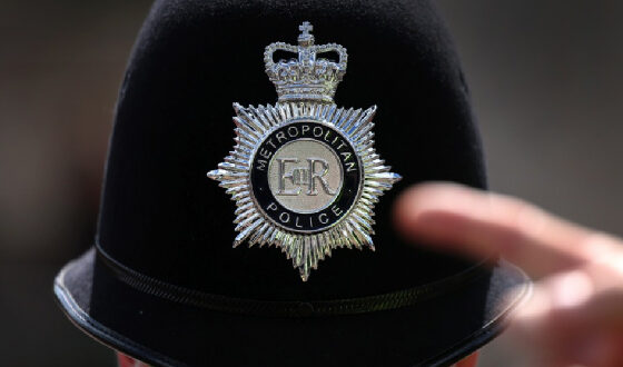 Britská Metropolitná polícia zamestnala páchateľov násilníckych trestných činov na deťoch „s cieľom zlepšiť diverzitu“. Odznak Metropolitnej polície na prilbe dôstojníka…