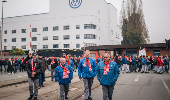 Koncern Volkswagen prepustí v Nemecku 50 000 zamestnancov kvôli poklesu ziskov. Zamestnanci Volkswagenu sa zhromaždili na pochode počas varovného štrajku…