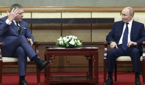 Predseda vlády Robert Fico, ktorý sedí v kúte, sa stretol s prezidentom Ruskej federácie Vladimírom Putinom, ktorému údajne civilizovaný svet…